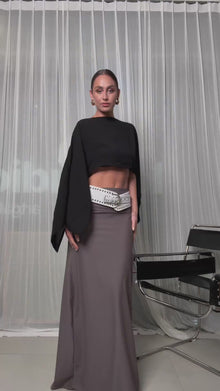 Long-sleeve top perfect for both beach and night outings. It’s made from lightweight, airy fabric with a relaxed fit. The sleeves are fitted at the shoulders and flare out dramatically from the elbows, adding a breezy, elegant touch. The top has a loose cut with a subtle high-low hem, making it easy to layer over swimwear or dress up for a night out. Its versatile style works seamlessly for a day by the shore or an evening event.